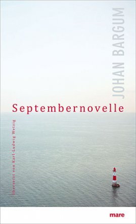 „Septembernovelle“ von Johan Bargum. Ein Buch, das in sich stimmig ist. Die schöne Gestaltung, das nordische Foto, eines einsamen Leuchtturms, der aus dem Mittelpunkt gerückt in leichtem Dunst in ruhiger See steht.