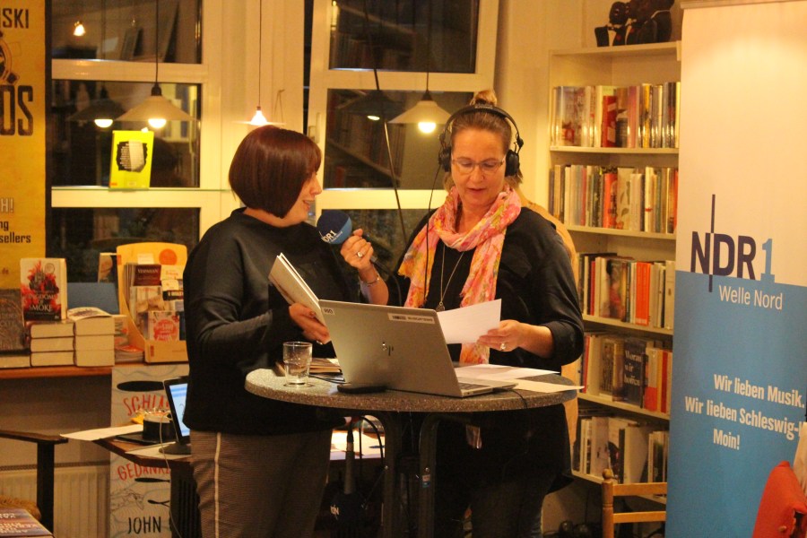 Livesendung aus der Buchhandlung mit vielen Gästen
