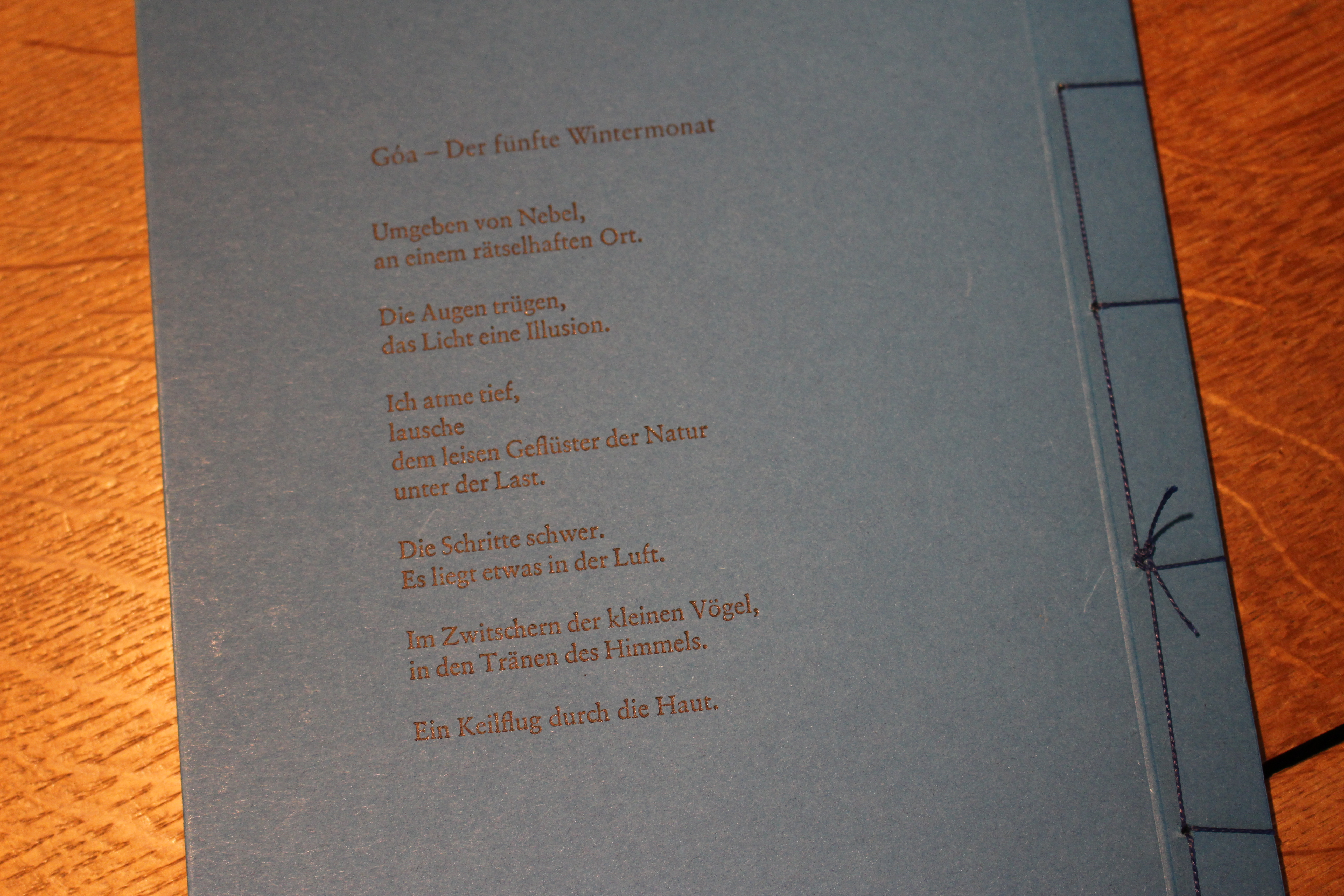 Das Buch selbst ist ein Erlebnis und ein handwerkliches Kunstwerk. Gesetzt wurde das Werk mit einer Linotypen-Setzmaschine und gebunden nach der offenen, japanischen Art. Das wunderschöne und bibliophile Werk wird ergänzt durch eigens für das Werk geschaffene Graphiken, d.h. Radierungen und Linolschnitte von Jón Thor Gíslason.