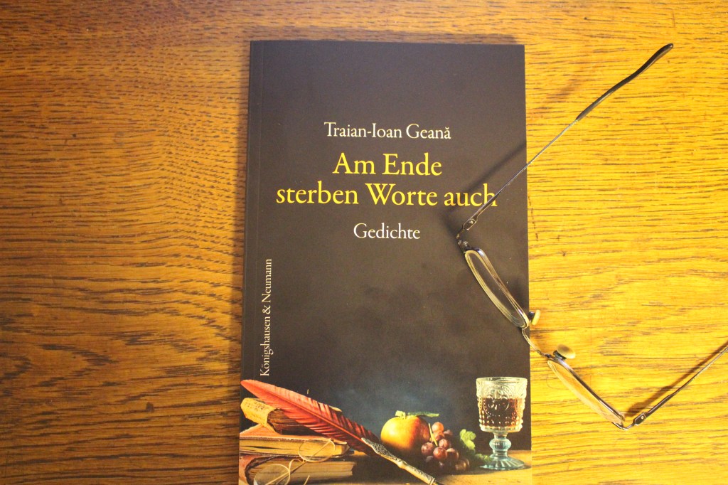 „Am Ende sterben die Worte auch“ ist ein Satz, hier sogar ein Titel, der prophetisch eine dezente Stimmung von Melancholie verursacht. Dabei sind die Gedichte nicht schwerfällig, sondern Traian-Ioan Geană zeigt sich als Sprachkünstler, der zeitgenössische Lyrik verfasst und aktuelle Themen und Stimmungen einfängt. Das Buch ist somit kein Abgesang, auch wenn die Titelgestaltung an ein Vanitas erinnert. Ein Stillleben, eine sprachliche Seelenreise, die ganz genau zu beobachten weiß und dabei Gefühls- und Gedankenmomente fixiert.
