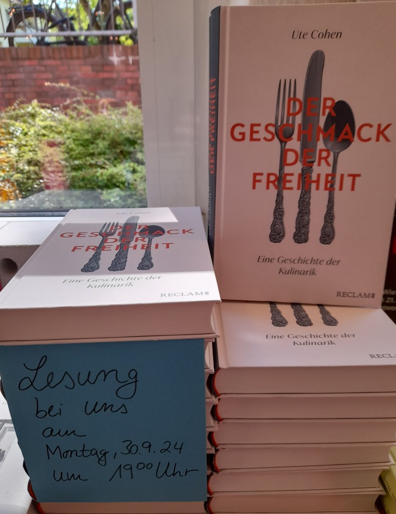 Nicht verpassen: Montag, 30. September 2024. 19:00 Uhr Lesung mit Ute Cohen in der Buchhandlung Almut Schmidt. Hauke Harder spricht mit Ute Cohen, die aus ihrem Buch »Der Geschmack der Freiheit« liest.