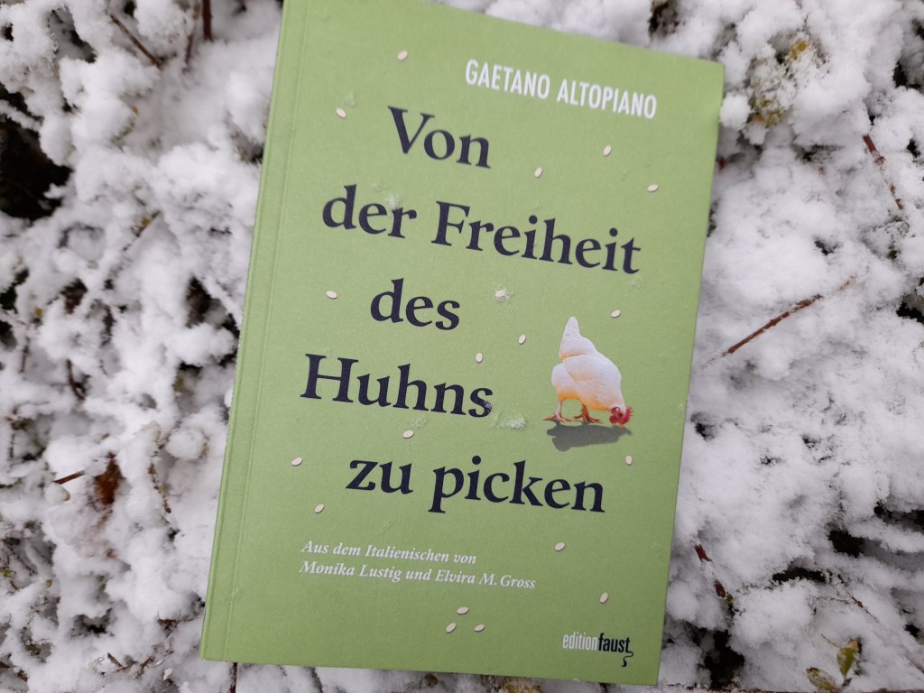 Das dünne Werk „Von der Freiheit des Huhns zu picken“ ist voller Miniaturen. Diese Kurztexte und Sätze sind so sehr komprimiert, dass sie sich in uns verzahnen und die Gedanken neu ordnen. Die Inhaltsangabe und der Umfang stehen auf den ersten Blick im Widerspruch. Auch die Themenvielfalt beeindruckt durch den Umfang und alles wird erfasst. Gaetano Altopiano schreibt schelmisch und tiefgründig. Er will durch Positionswechsel die Blicke verändern und uns zum Neudurchdringen drängen. Dabei flunkert er, philosophiert oder untersucht von weisen Menschen Vorgedachtes mit eigenen Gedanken.