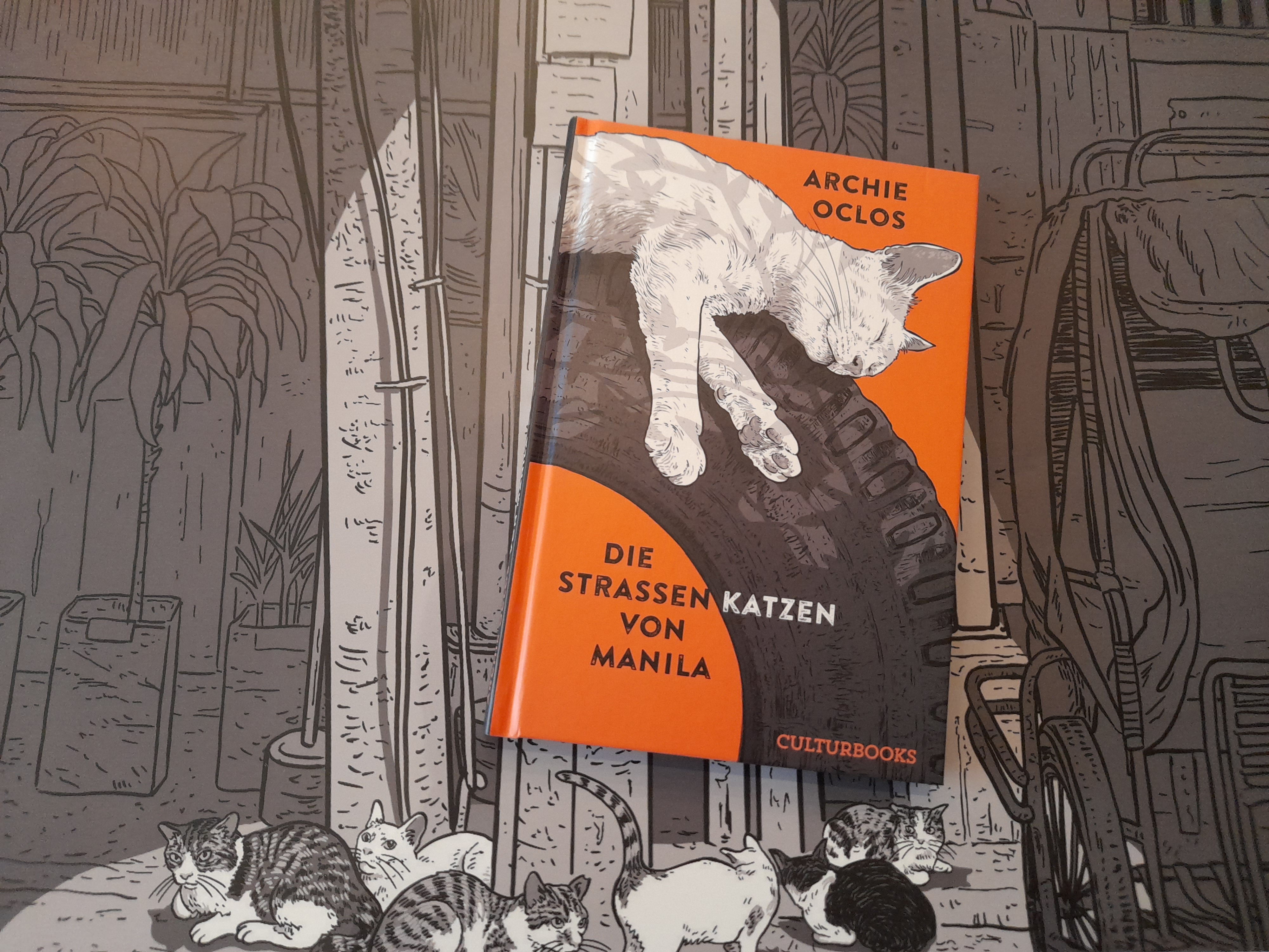 Archie Oclos ist ein philippinischer Künstler. Seine Werke beschäftigen sich mit politischen und sozialkritischen Themen. Im Mittelpunkt stehen Ungerechtigkeit und Korruption. In „Die Straßenkatzen von Manila“ erzählt er in sechs Kapiteln eine Geschichte. Sechs Katzenperspektiven, die am Ende zusammengeführt werden. Nach den jeweiligen großen Abenteuern werden sie eine Gruppe und im chaotischen Gewirr der Straßenkabel, dem Durcheinander der Straßen finden sie ein Zuhause, einen Karton, in dem Katzen sich stets geborgen fühlen. Dies Bild bleibt am Ende ein Motiv des Zusammenhalts.