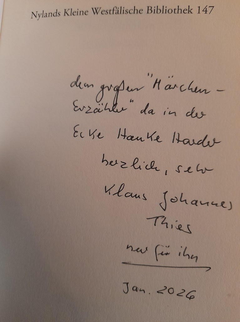 Als wir noch staunen konnten, waren wir klein und die Welt ganz groß. Jetzt erscheinen wir größer und die Welt haben wir schrumpfen lassen. Wäre es möglich, die Welt unzerdacht wahrzunehmen? Wahrnehmen beinhaltet die Wahrheit und doch hadern wir beständig. Der kindliche Blick muss nicht naiv sein, darf aber das Überstülpen des Eigenen gerne minimieren, damit nicht meine Wahrheit, sondern das Ersichtliche erfasst wird. Diese eigene Reduktion mit dem melancholischen Schalk hat Klaus Johannes Thies perfektioniert. Neu ist jetzt sein Lesebuch erschienen, das zusammengestellt wurde von Hannes-Martin Rüter. Für Leser, die diese Thies-Welt neu betreten, eine gelungene Einladung und für Kenner ist es eine Rückkehr in Bekanntes und Unbekanntes.