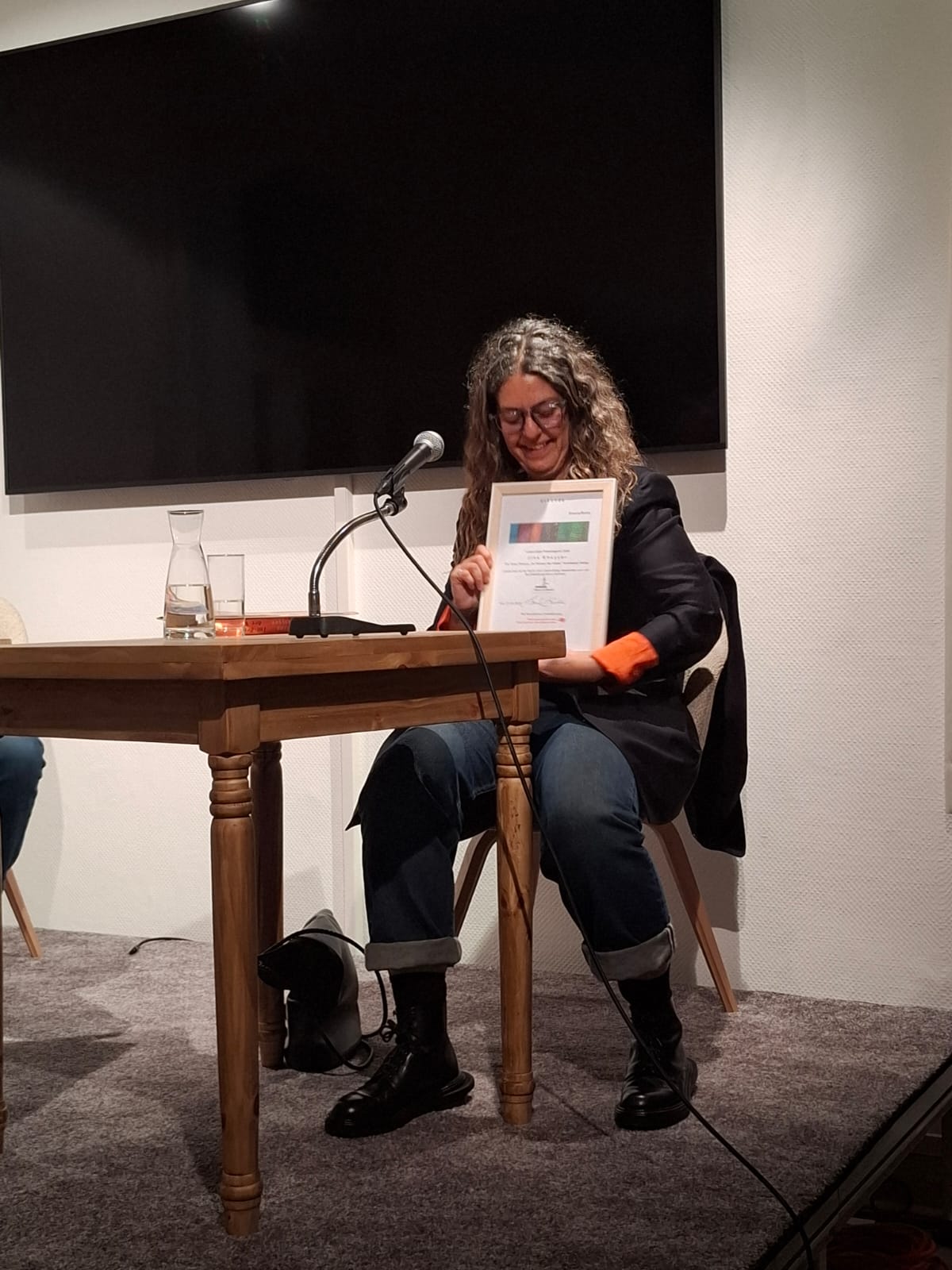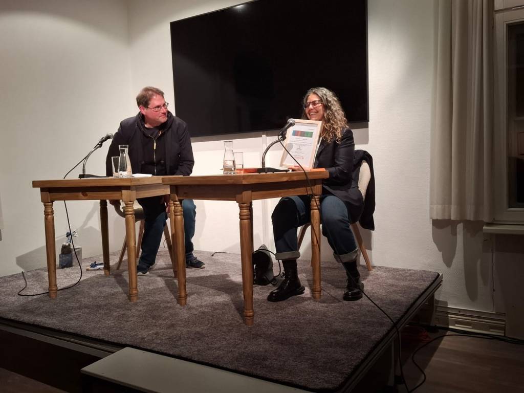 Danke an die zahlreichen Besucher, danke an meine Weggefährten für den Leseschatz-Preis, danke an die Vorredner und danke besonders an Jina Khayyer, die den Preis angenommen und die weite Reise zu uns gemacht hat.
